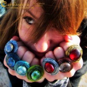 Anello CartEssenza in cartapesta e materiali riciclati, completamente realizzato e dipinto a mano, firmato ed impermeabilizzato.